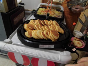 焼きそばにホットケーキ🥞フルーツ🍎🍐🍊