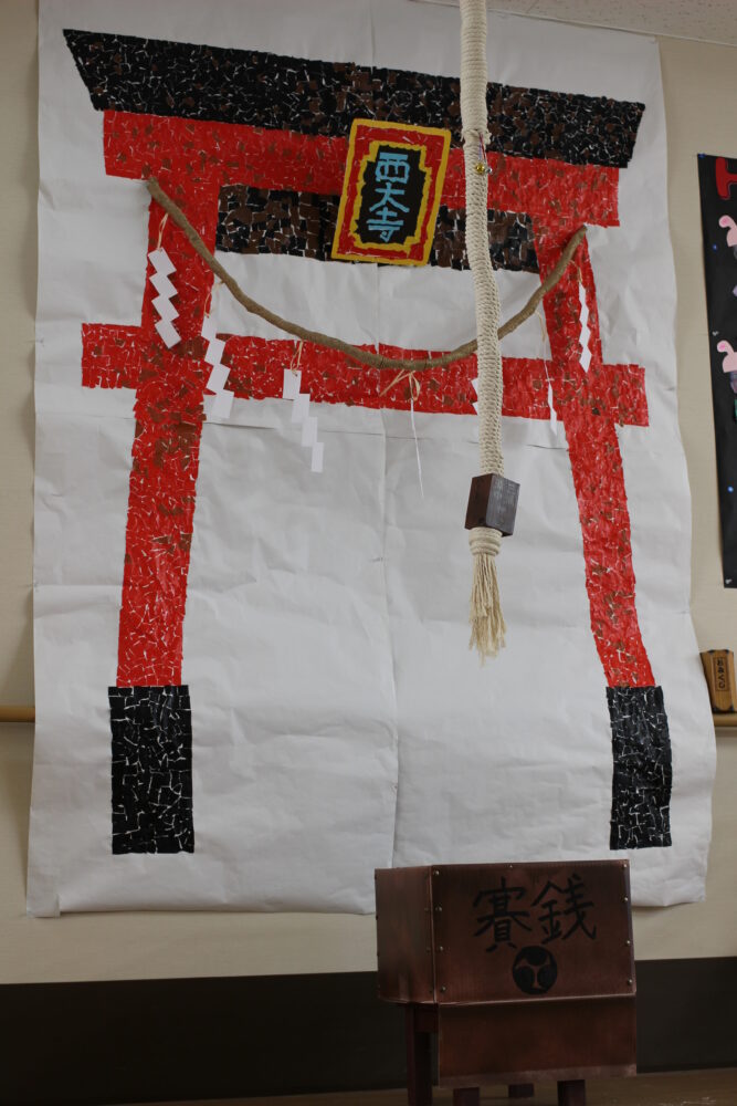 利用者、職員が力を合わせて作ったお手製鳥居、賽銭箱です🎵