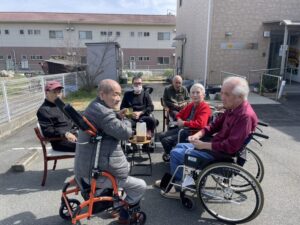 雨がやんで少し外に出てみんなでお茶Time☕️
