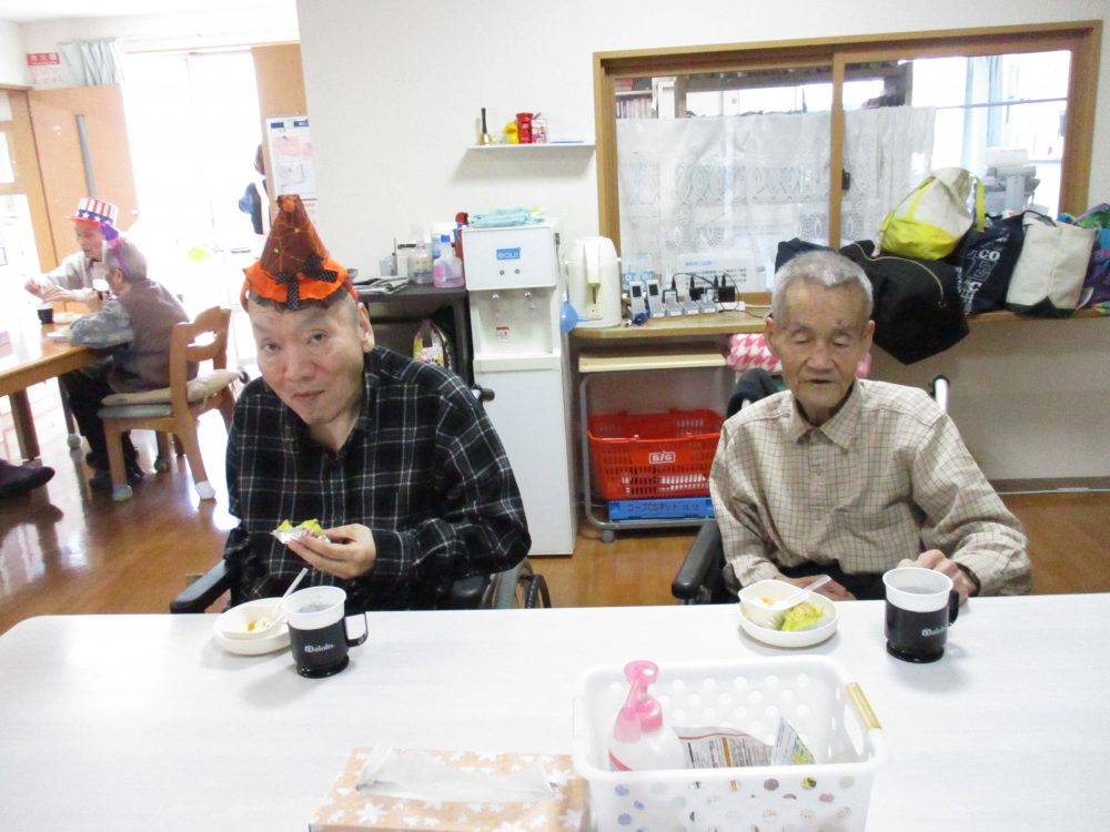皆さん仮装し手作りのスイートポテトを食べ楽