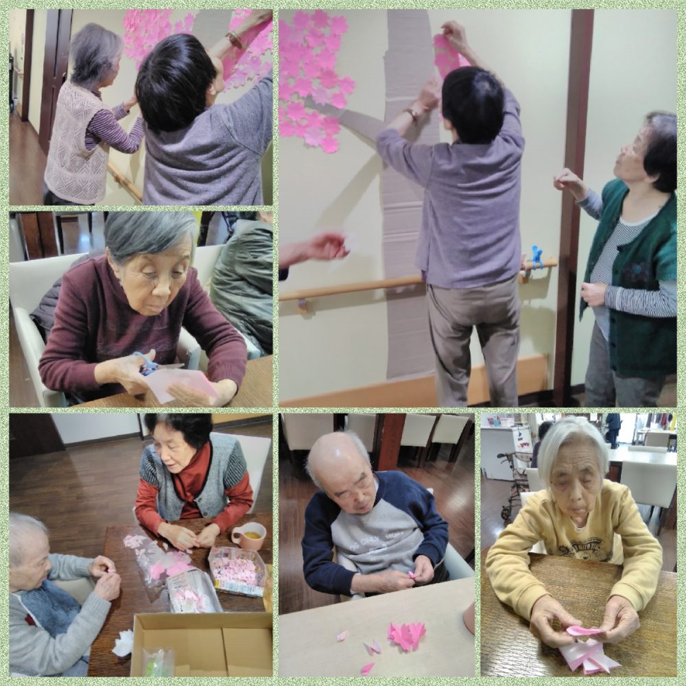 小さな桜の切り花を折り紙で作り、皆様に貼っていただました(^-^)