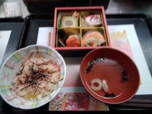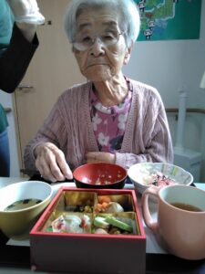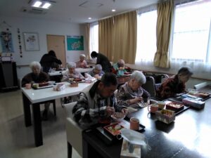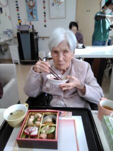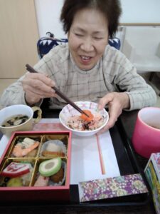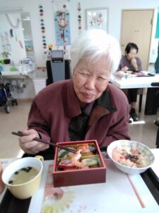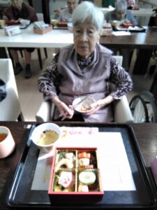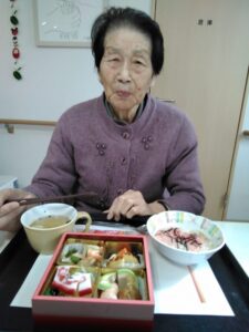 元旦の昼食におせち料理をみんなで頂きました。食べやすく柔らかい素材でとても好評でした。