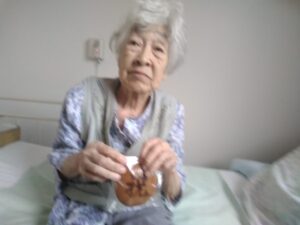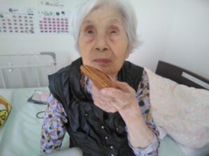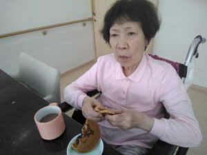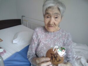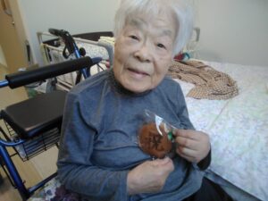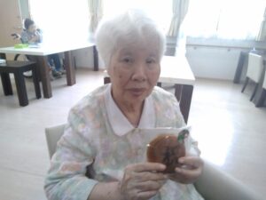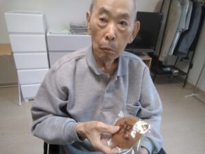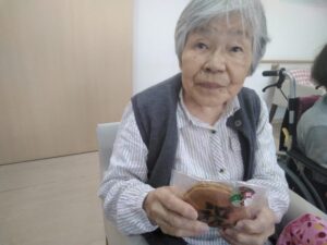 どら焼きに(祝)の字を焼き印してもらいおやつに食べて頂きました。