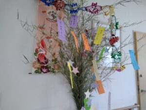 七夕の飾りつけを入居者様にも手伝って頂きました。