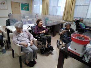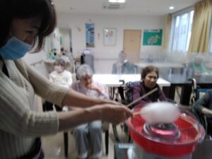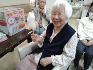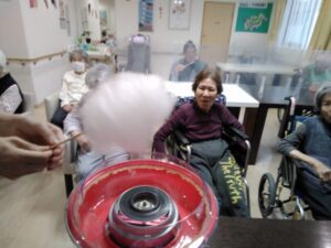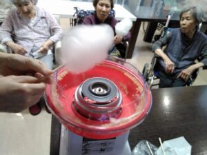 2021.05.20 ハートリンク南岩国 綿菓子作り 今日は入居者様と一緒に綿菓子作り!(^^)! 初めて食べたと言われる方もおられ皆様大喜び(#^.^#) 最初は小さな綿菓子がみるみる大きくなりビックリでしたね。 一覧ページに戻る