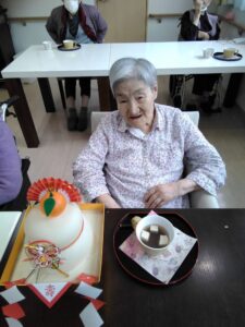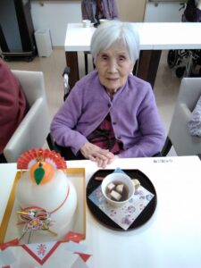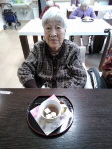 鏡開きで豆腐のぜんざいをみんなで頂きました☆