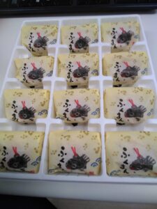 フグの形をした可愛らしい白あんの入ったお饅頭。新年は食べてばかりのスタートとなりましたが