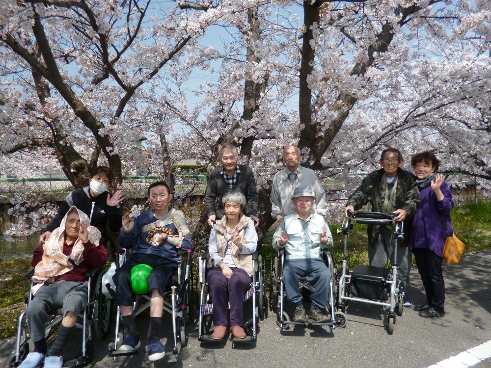 先日、施設のまわりに咲いている桜を見にお花見に行きました)^o^(