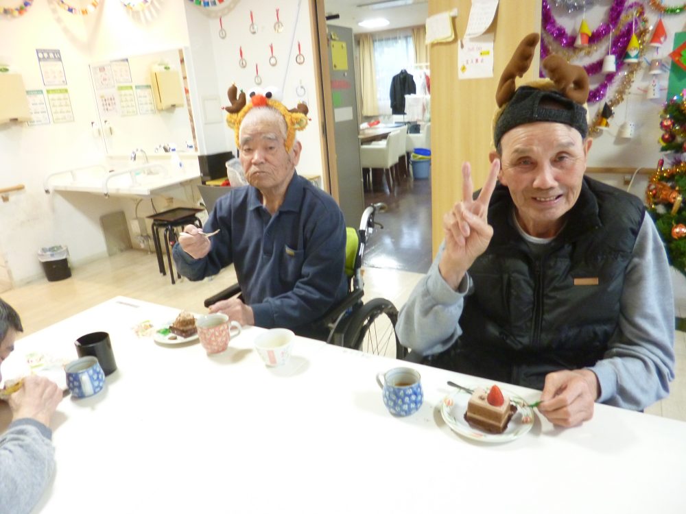 施設長のおごりでクリスマスケーキがおやつで😝(笑)