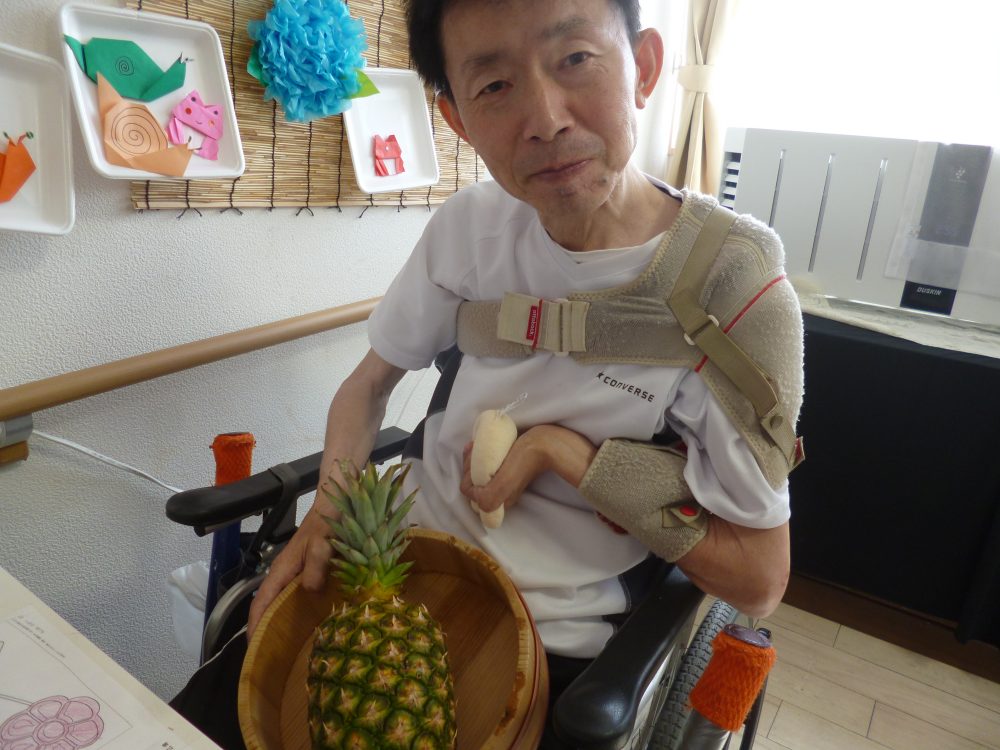 パイナップルを切っておやつで提供しました(^^)/