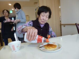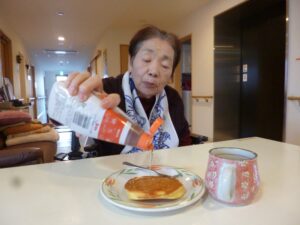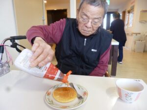 2019.02.19 ハートリンク西尾 ~ホットケーキ~ こんにちはヽ(^o^)丿ハートリンク西尾です おやつの時間にホットケーキを作ってもらいました おいしそうに焼けて、メープルシロップをかけて完成(●^o^●) おいしく頂きましたヽ(^o^)丿 一覧ページに戻る