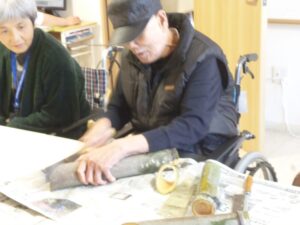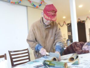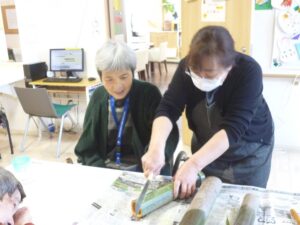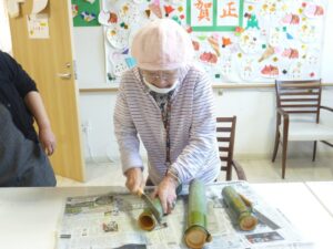 竹を切って、皆さん真剣に作っていました(; ・`д・´)