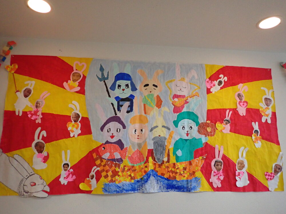 七福神と干支のうさぎで正月らしい作品になりました(^^)/