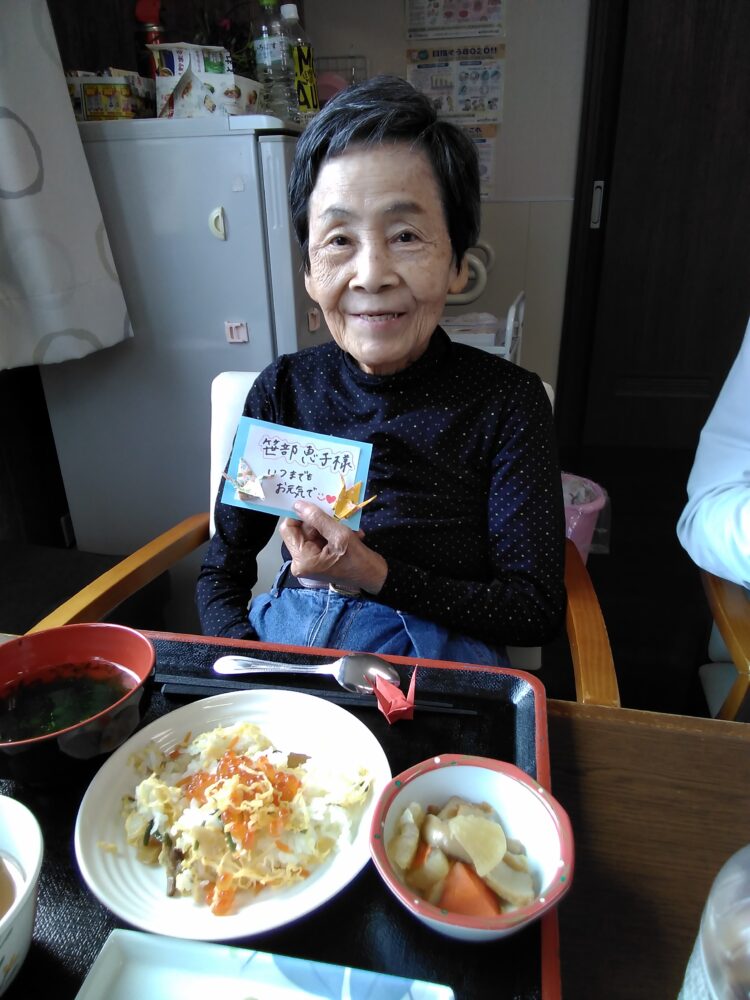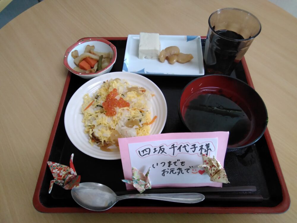 2021.09.21 ハートリンク岡山北 敬老の日です♬ 敬老の日を皆様で迎えることが出来ました! スタッフが心をこめ、一つ一つ折った 千羽鶴をメッセージカードに添えてプレゼントさせて頂きました 昼食は、いくらのちらし寿司です^^ 「ごちそうじゃなぁ!」 「ありがとう!」 笑顔が広がります(^_-)-☆ これからも末永くお元気にお過ごしいただけるよう心を尽くしてまいります💛 一覧ページに戻る