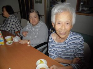 スイートポテトはおやつに💖以前、みんなで造ったランプシェードの灯りの中、いただきました!!秋を感じる食事に、みなさん、ご満悦でしたっ(^_-)-☆