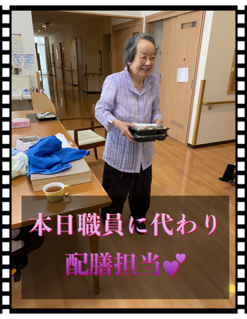 本日は入居者様が配膳をしてくれます。これも一味違うイベントです(笑)