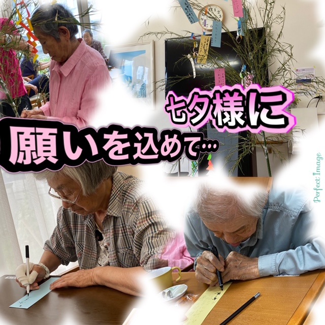 2020.07.07 ハートリンク岡山北 ~七夕様へ願いを込めて~in okakita~ 真剣に願い事を書いていますね!! 七夕様に願いを込めて・・・・皆様が幸せで過ごせるように・・・ 職員一同も願いを込めて・・・心の通うケアの提供を・・・ 一覧ページに戻る
