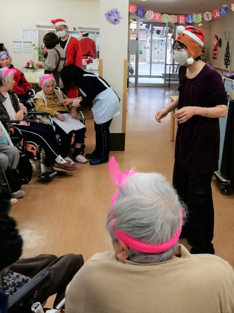 2020.12.23 ハートリンク西大寺 クリスマス会 12月20日(日) クリスマス会を行いました みなさん、童心に返られたようなご様子でした。 ビンゴゲームで盛り上がり カラオケを使って歌われる方踊られる方、 たくさん笑顔が見られました。 一覧ページに戻る