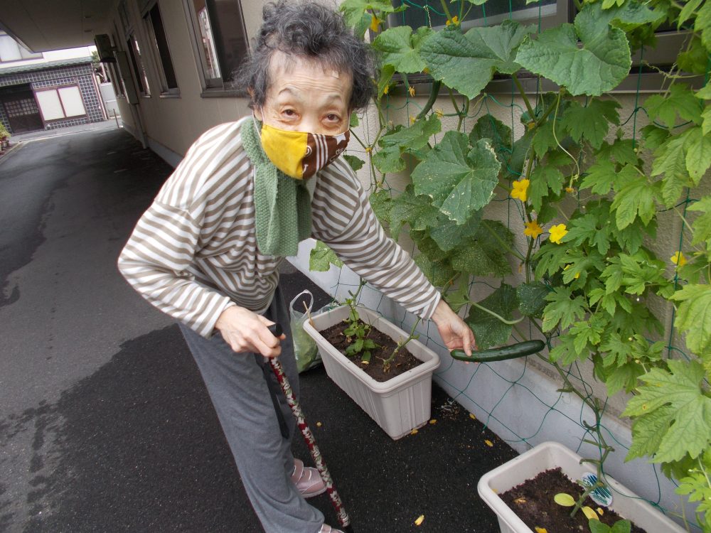 育ててくれたご利用者様及び職員に感謝しながら、皆様にも見ていただこうと「お野菜散策」日和に施設の周りをぐるっと。