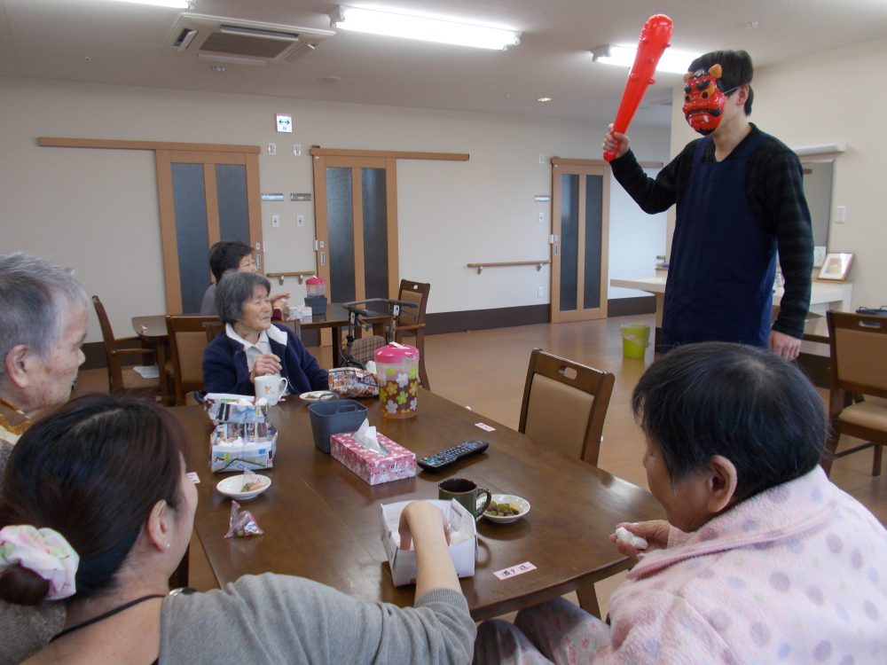 2019.02.03 ハートリンク西大寺 👹節分だ!!みんなで豆まきだぁ!! 施設の壁に、大きな鬼を作成しました👹 おやつときに、みんなでまめまきをしました。 夕食には⦅恵方巻⦆をいただきました!! 一覧ページに戻る