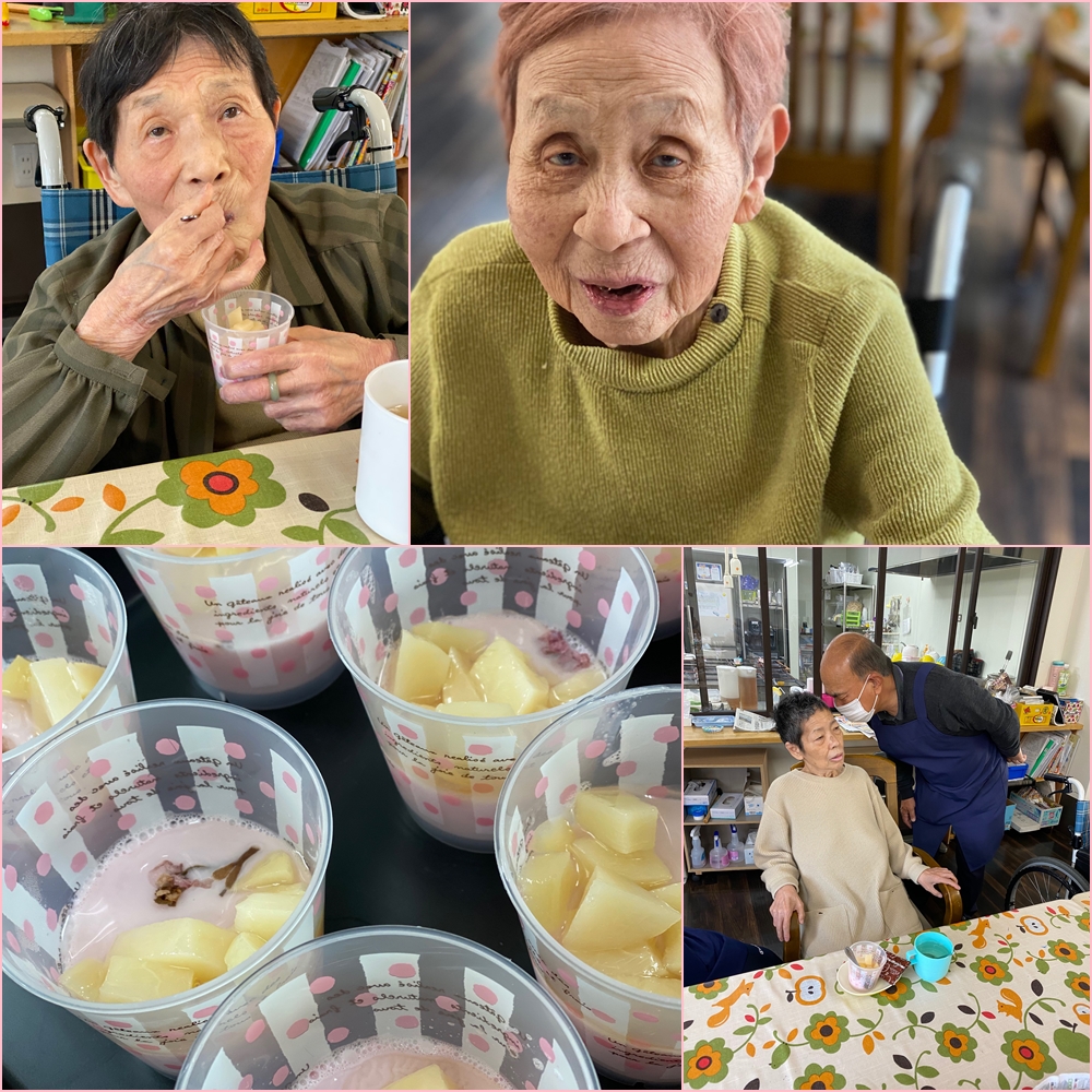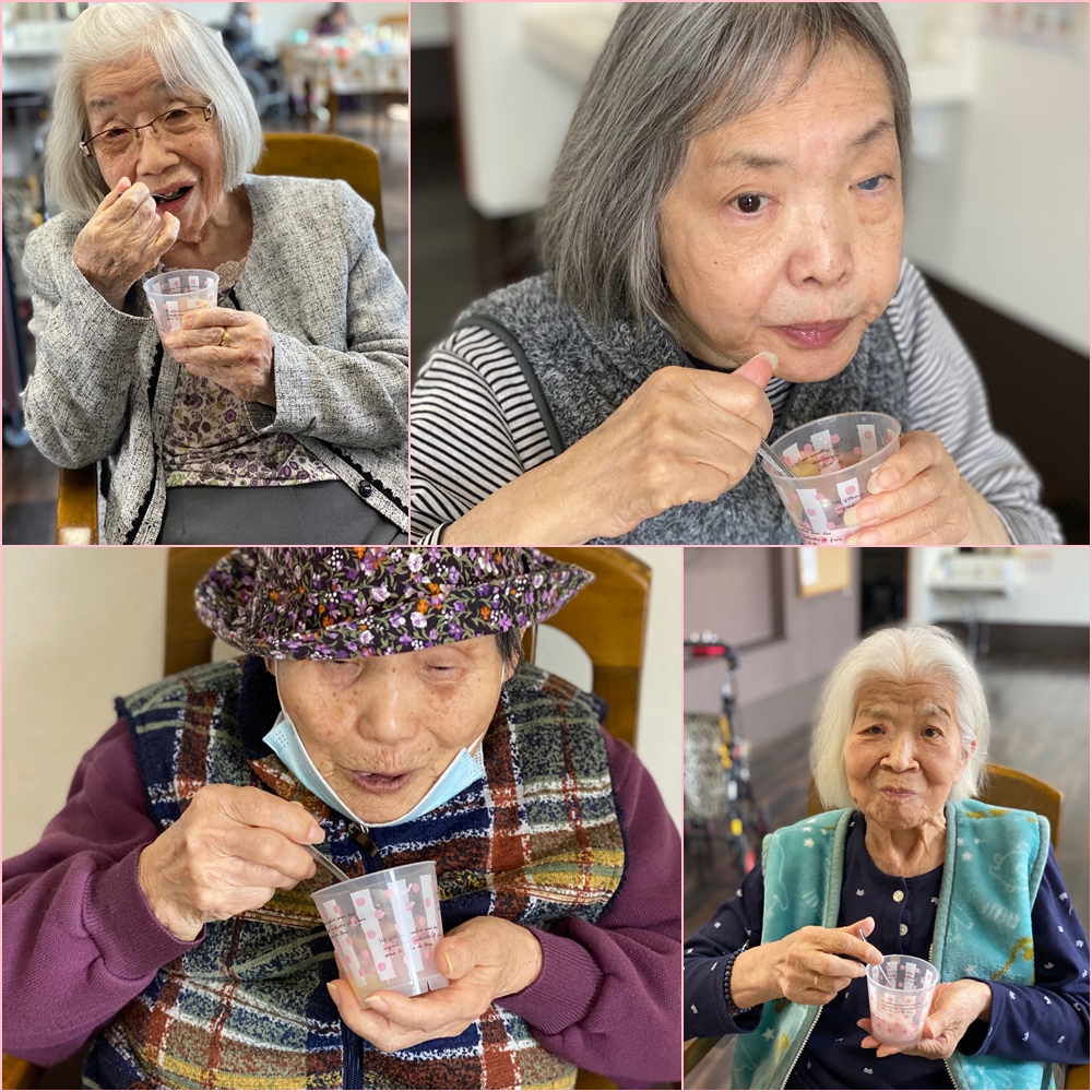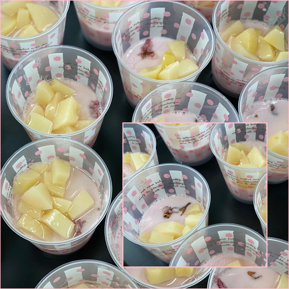 今日は桜色の寒天に桃のフルーツです( ´∀` )