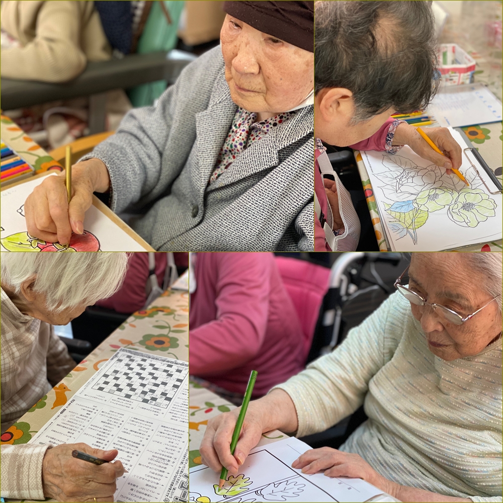 日曜の午後は塗り絵や施設の外を個別に散歩です( ´艸`)