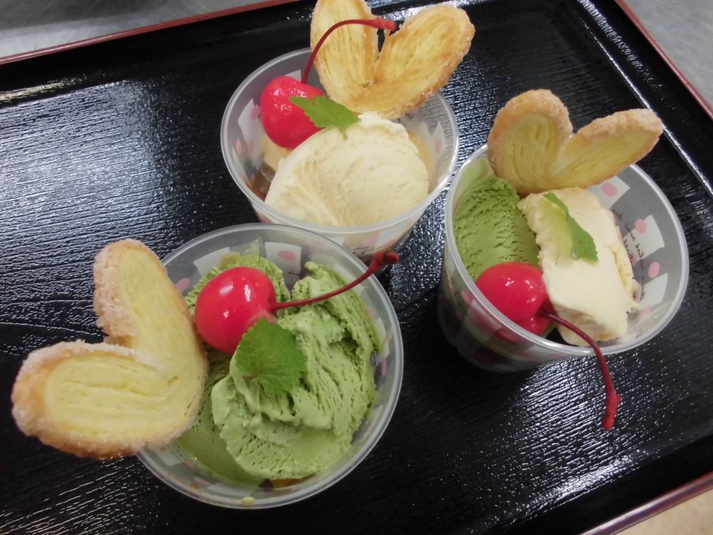 アイス・・・抹茶・バニラのトッピング。