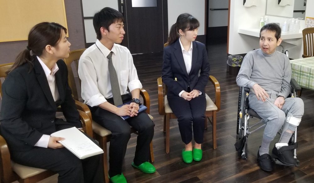 1年生の方々で利用者様にお薬や病気などのお話を聞かれたり、