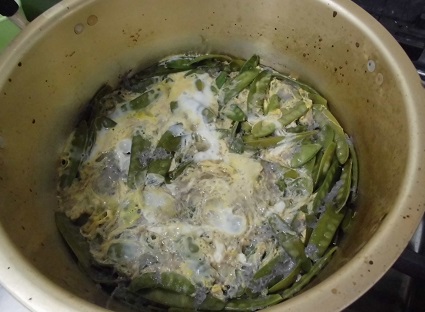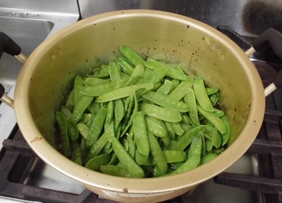 筋を取ってくださったエンドウは夕食に卵とじになって出てきました(○´∀`○)