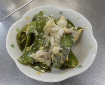 筋を取ってくださったエンドウは夕食に卵とじになって出てきました(○´∀`○)
