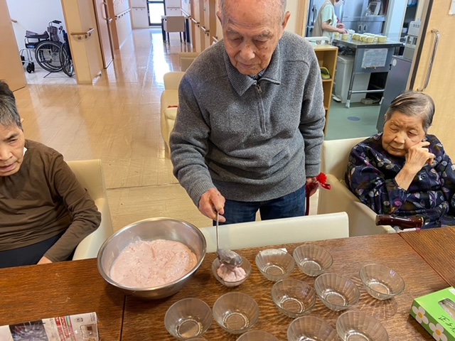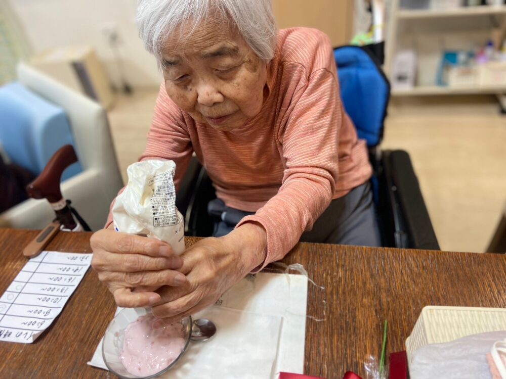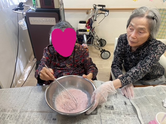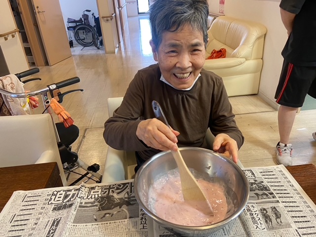 おやつ作りと、女性の利用者様に