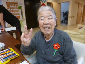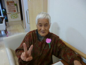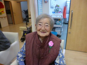 等施設の女性の利用者様に手作りのカーネーションを