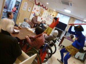 皆様赤鬼さん青鬼さんに容赦なく豆をぶつけます。(笑)