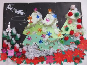 一年を通し、皆さんが集うフロアーに、皆で壁紙を作成してきました。