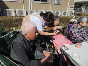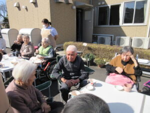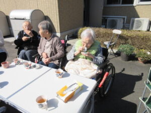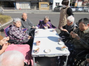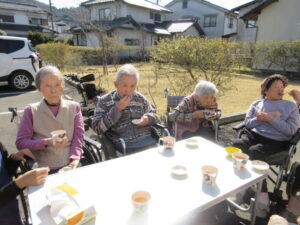 2023.03.12 ハートリンク津山口 🌼 日向ぼっこ 🌼 天気が良いので🌼 日向ぼっこ🌞 外での おやつは 最高だそうです(^_^)v 本日のおやつは 草餅 喉につまらないように 上手に食べられていました(笑) 一覧ページに戻る