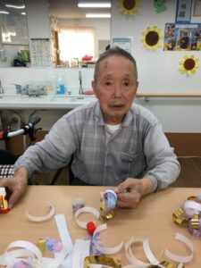 数日前に笹の葉のお飾り作りを利用者様に手伝って頂きました(^^♪