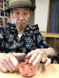 とっても大きいスイカは利用者様のご家族からの贈り物です(*^-^*)
