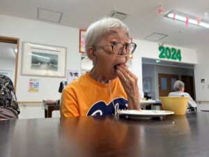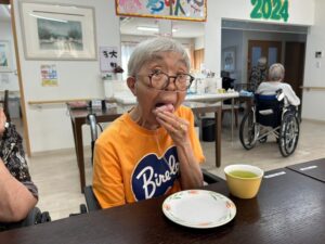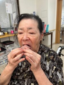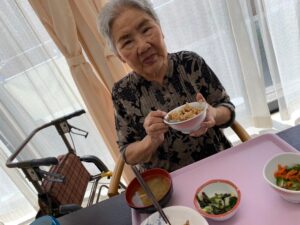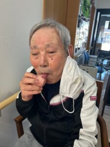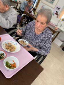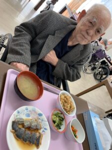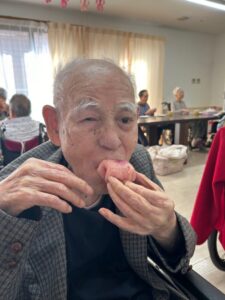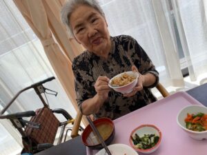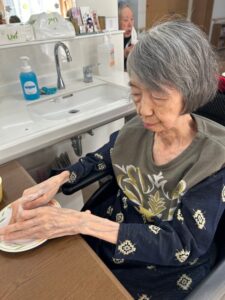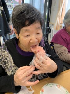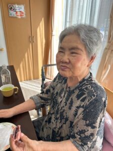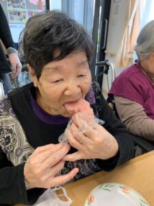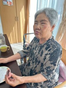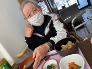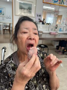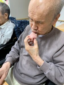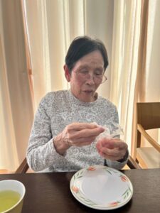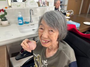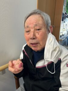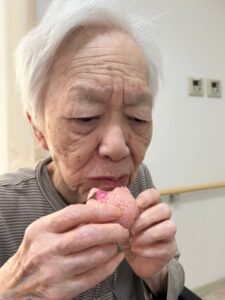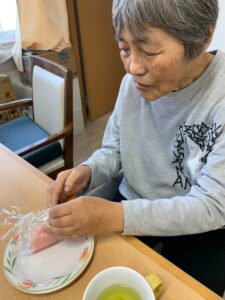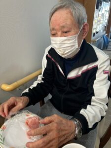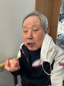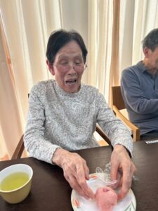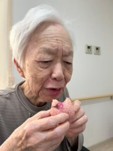 利用者様に桜餅用のごはんに桜色になる魔法の粒粒を