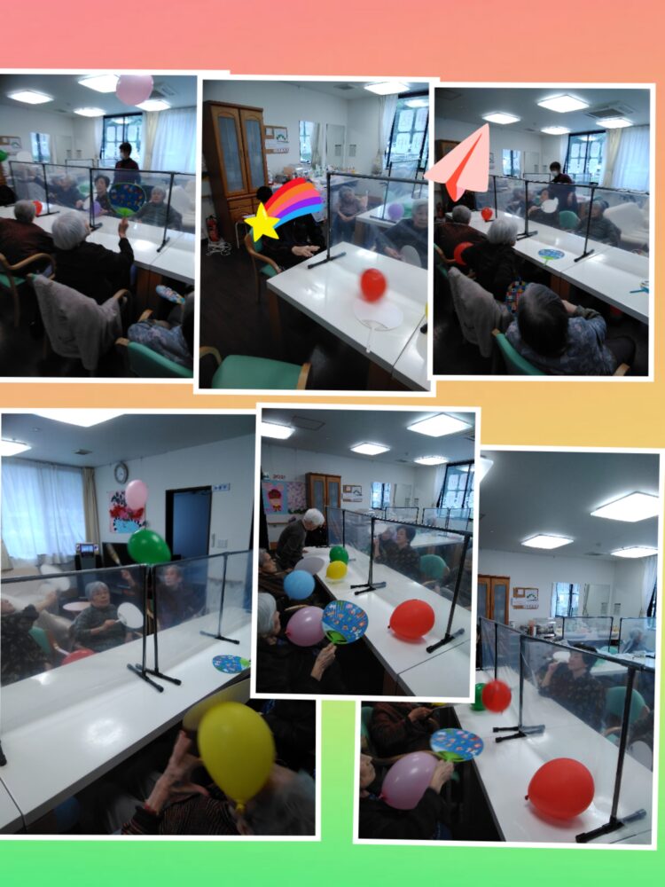 そして最後は、コロナ禍の中、飛沫防止対策のパーティションを使い、風船バレー。