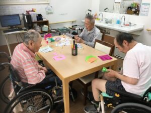 数日前に笹の葉のお飾り作りを利用者様に手伝って頂きました(^^♪