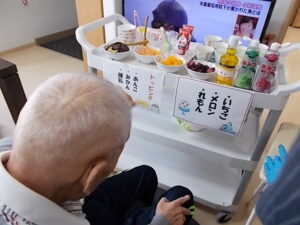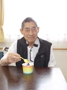 あんこが大好きな入居者さんは、あんこを山盛りにトッピングして満面の笑みを