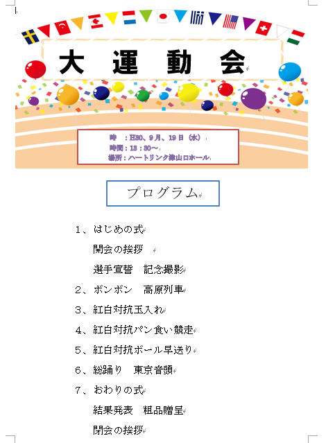 敬老会で津山口はじめての、大運動会を開催しました!!プログラムも作成し、本格的です(^^♪