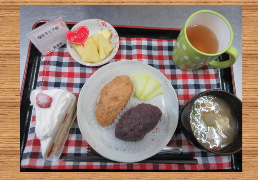 お誕生日の入居者様の希望で、昼食は『おはぎ』です!!