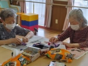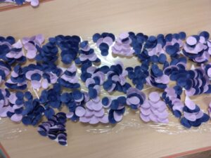 2025年10月15日(水曜日) デイサービスレイクヒル琴 大収穫🍇 壁に何を飾ろうか考えた結果、ぶどうを飾ることになりました 粒の数も貼り方もお任せで、職人さんたちがのりやボンドで 一粒一粒貼って下さり、大量のぶどうの収穫が出来ました✨ 飾る準備中です! 完成をお楽しみに~(^▽^) イベント情報一覧へ戻る