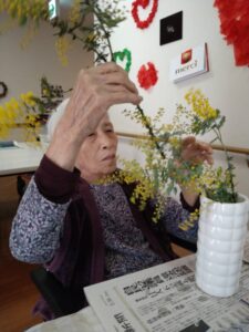 職員の自宅で育ったミモザを生けて下さいました✨