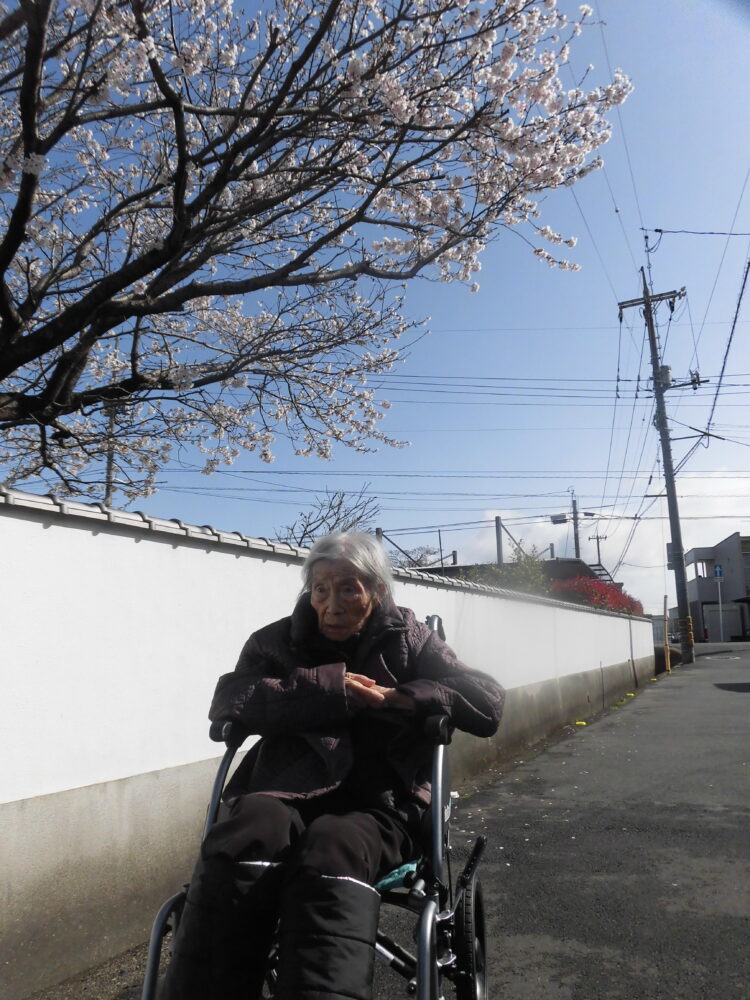 近くにさくらの木があり満開でした。利用者様とさくらを見に行きました🌸