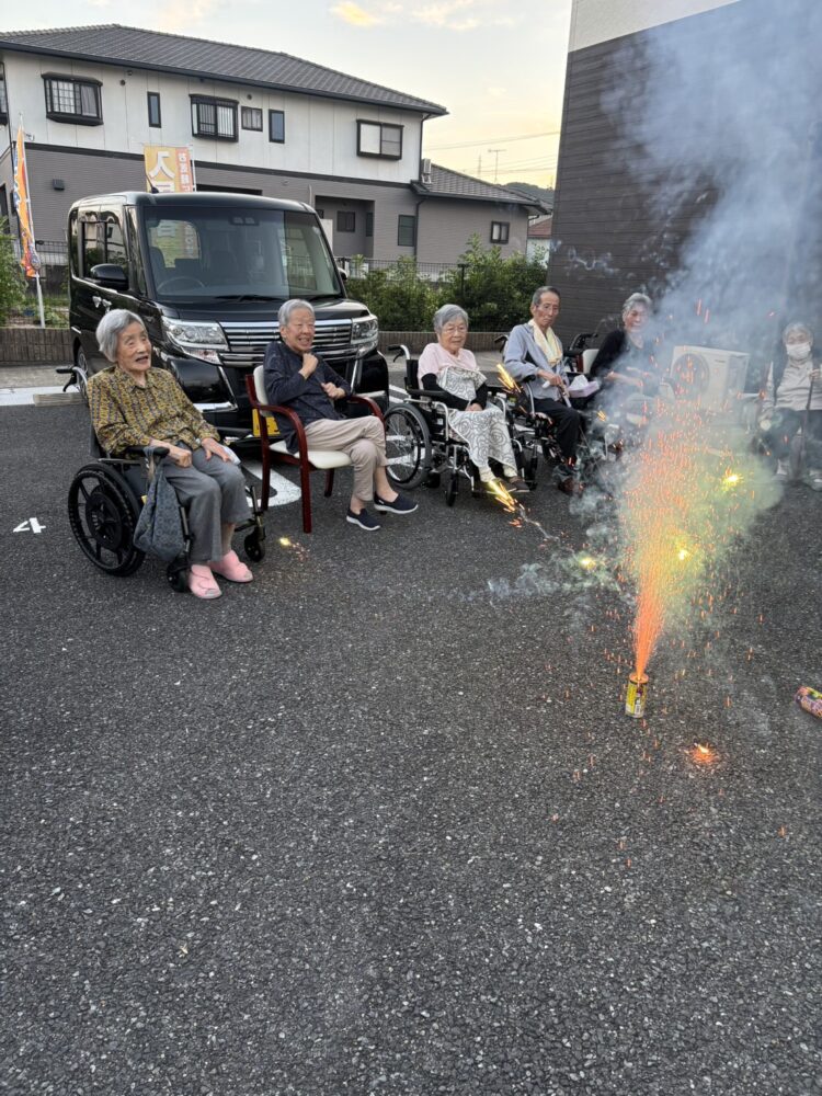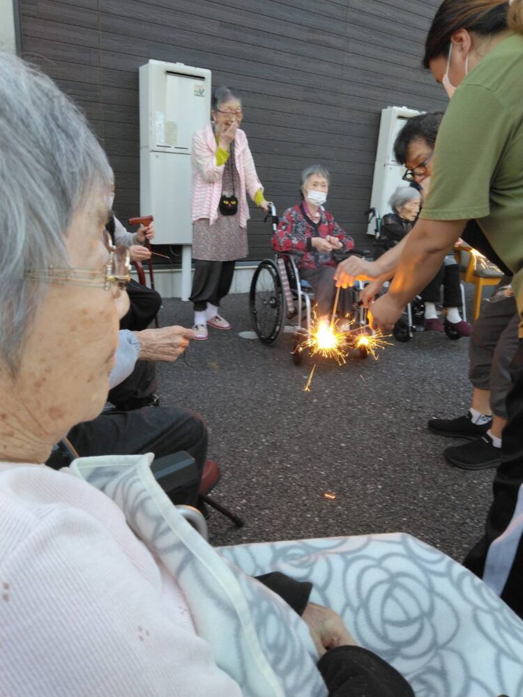 2025年09月29日(月曜日) ハートリンク広島大竹 🎆花火🎆 こんにちは、ハ-トリンク広島大竹です 夕食後に外に出て皆さんで花火をしました💕 色々な花火があり綺麗ね、花火なんて何年ぶりにしたかなぁ-と楽しんでおられました。 花火が終わったらアイスクリームも食べて夏の思い出になりました。 花火とても綺麗で癒されました。アイスクリームも冷たくて美味しかったよ イベント情報一覧へ戻る