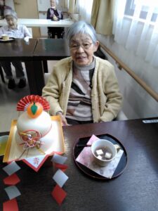 鏡開きで豆腐のぜんざいをみんなで頂きました☆