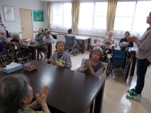 入居者さんと一緒に、“うさぎ”の出てくる歌を連想し