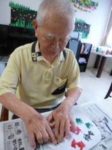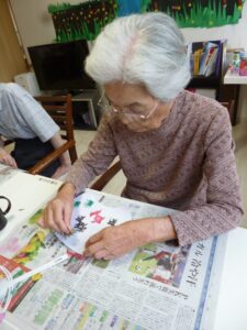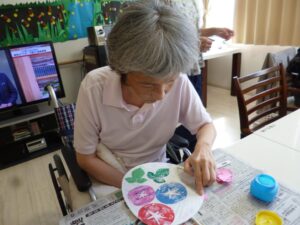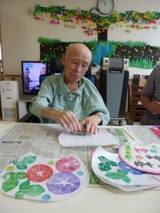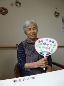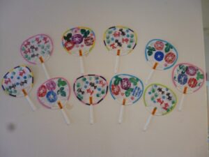 皆さんで団扇を作りました。